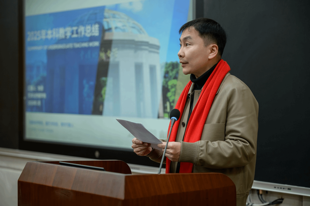 院长何清俊作学院2025年度工作报告。他从党建思政、学科建设、人才培养、科学研究与社会服务、美育建设等多个维度,详尽报告了学院2025年的工作进展。他指出,2026年学院将以申报博士点为引领,以提高人才培养质量为核心,以深化特色交叉学科发展为路径,全力开创学院事业发展新局面。