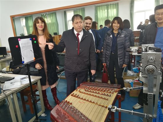 ,在桂宇晖院长的陪同下参观了三位教授的工作室,并就教师的研究方向和下一步的合作展开了交流。