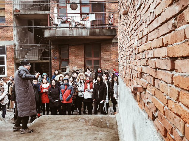 两位老师带领了学生们一起在金口的老城区进行了勘察走访,深入当地的人文环境,发现各种独具特色、年代久远的老房子和废弃的俄罗斯造船厂,给我们的改造设计带来了诸多灵感,同学们也受益匪浅。这次的合作肉漫