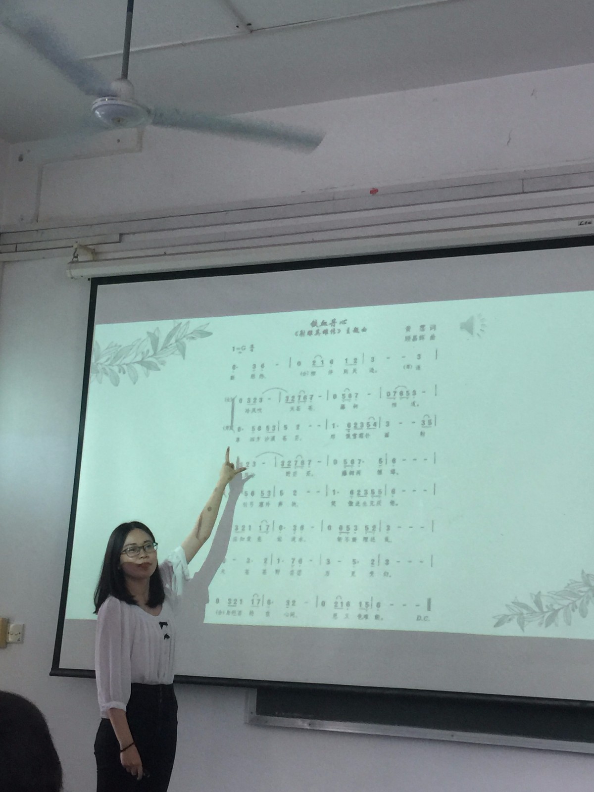 陈柳娇老师选择的讲课内容为《音乐中的前景-中景-背景》,课程导入从画面给人呈现出的视觉层次感获取灵感。讲课伊始,从耳熟能详的小提琴协奏曲《梁祝》入手,通过分析其前景中景的音色处理,及背景的弱化处理,由浅入深,非常形象地阐明配器的思路及重要性。在讲课过程中,在设置的演唱和角色扮演的环节中,与现场老师和同学们积极互动,点燃了现场的气氛。