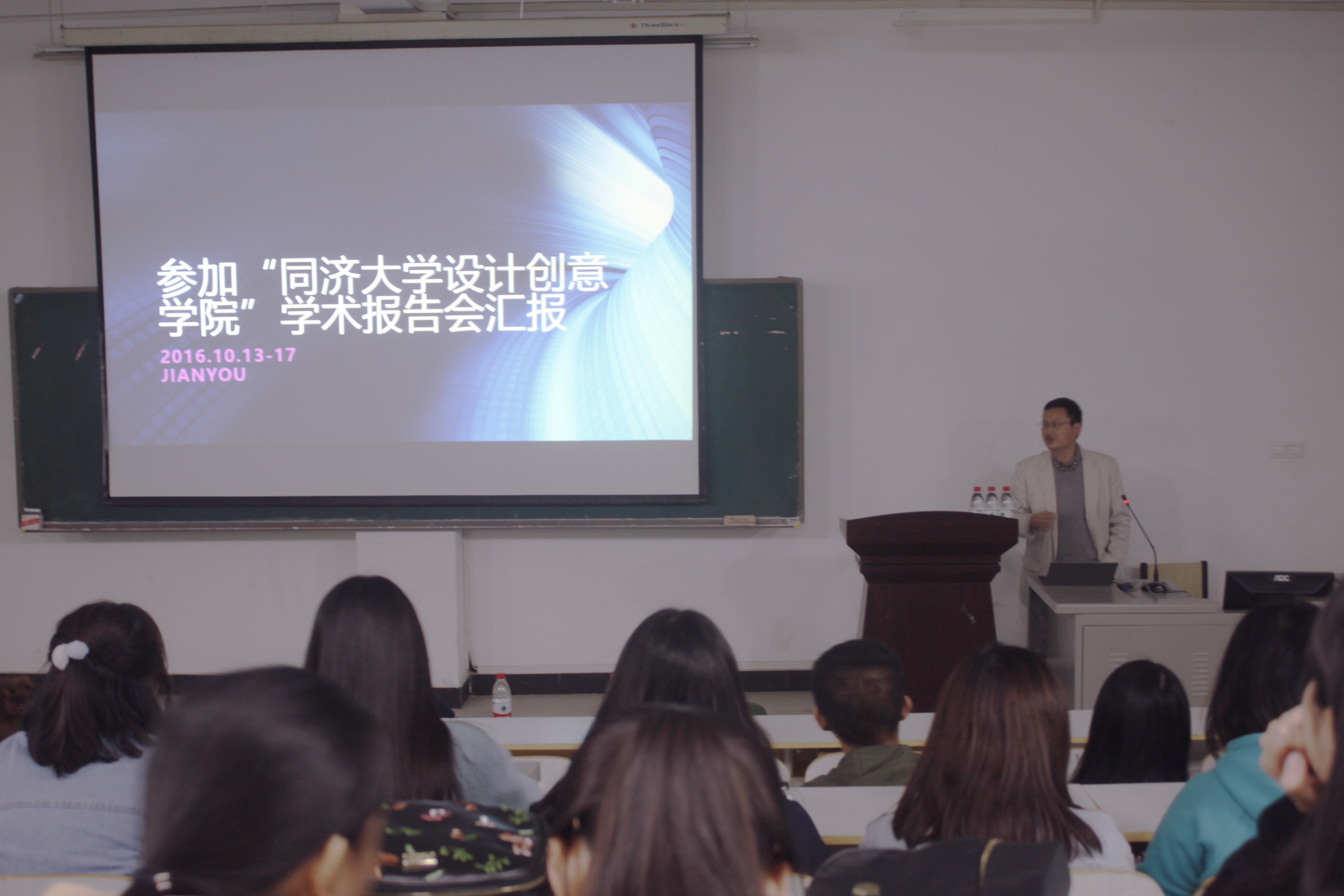 汇报中,高放老师用自己的所思所见向同学们讲解了信息可视化的概念,并以“吃西餐”的形象比喻解释了语音交互设计。陈晓玲老师以“智能系统创新设计”的用户体验设计为主题提出了以“服务”为核心以“产品-服务-创新”为发展方向的创新设计观念。邓韵老师以“右脑时代的设计思维”为主题阐述了“以人为中心的设计”理念。最后汇报的黄瑛老师则用一幅幅画面带领同学们走进同济校园,走进创意学院和美术馆,走进设计和艺术的殿堂。