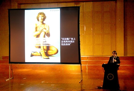 讲座进行,吴学夫教授从自己在山东威海发现的一家名为 “创意”的海鲜店谈起,他谈到,全民创意时代已经来临。创意时代的创意思维,吴学夫教授认为,应从五点把握。一是创意与文化的纽带;二是“概念”的开掘;三是视觉形式的策略;四是打破常规思维;五是创意背后的哲学和社会文化。