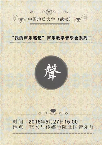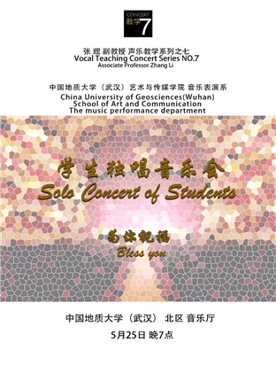 、音乐表演系、“张理副教授声乐教学系列之七——学生独唱音乐会”,源于2009——2012年校级本科《声乐精品课程教学》教学研究项目和2015年湖北省《声乐精品资源共享课程》教学项目(《声乐》是2015年,我校新增6门省级本科精品开放课程中的一门)。