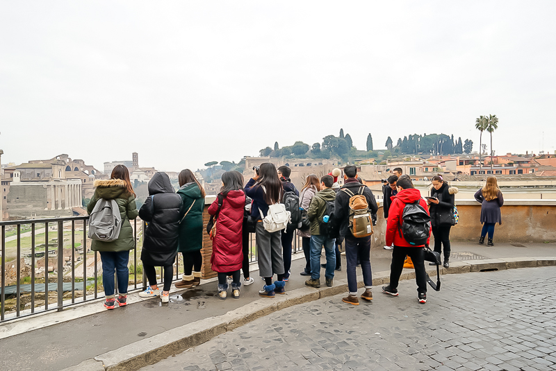 早上8点,访学团开始了第一天的访学之旅。马夫人带领访学团参观古罗马城并介绍了罗马七丘——帕拉蒂诺(Collis Palatinus)、卡皮托利(Collis Capitolinus)、埃斯奎利诺(Collis Esquilinus)、维米纳莱(Collis Viminalis)、奎里那莱(Collis Quirinalis)、西里欧(Collis Caelius)、阿文提诺(Collis Aventinus)的历史文化。访学团先后参观了古罗马广场,包括众多的神庙、会堂、元老院议事堂、凯旋门、纪念柱等,坎皮多利奥市政厅、维多里奥纪念堂等。下午,访学团先后参观了拉沃拉广场、万神殿、少女泉、西班牙广场等。古罗马伟大的历史文化及为后人留下的光辉的文化遗产给访学团留下了深刻的印象。