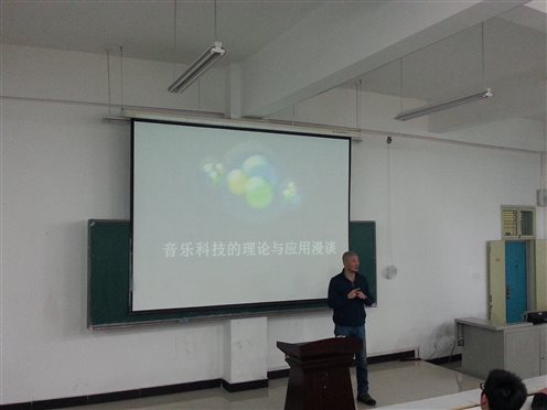 ,举行了一场题为“音乐科技的理论与应用漫谈”的学术讲座,电子音乐系主任赵飞副教授主持讲座。付晓东教授介绍了音乐科技这个交叉学科的研究前沿,分别从音乐声学基础理论、音乐生理与心理、和声与配器音响以及行业标准与术语四个方面来阐述音乐科技这个专业的具体研究领域。肉漫