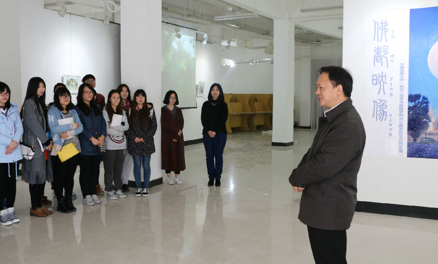 开幕式后,到场领导、老师参观画展。马昌前处长对所观之画赞不绝口,赞叹艺术的惊人魅力。本次展览将持续到11月18日。