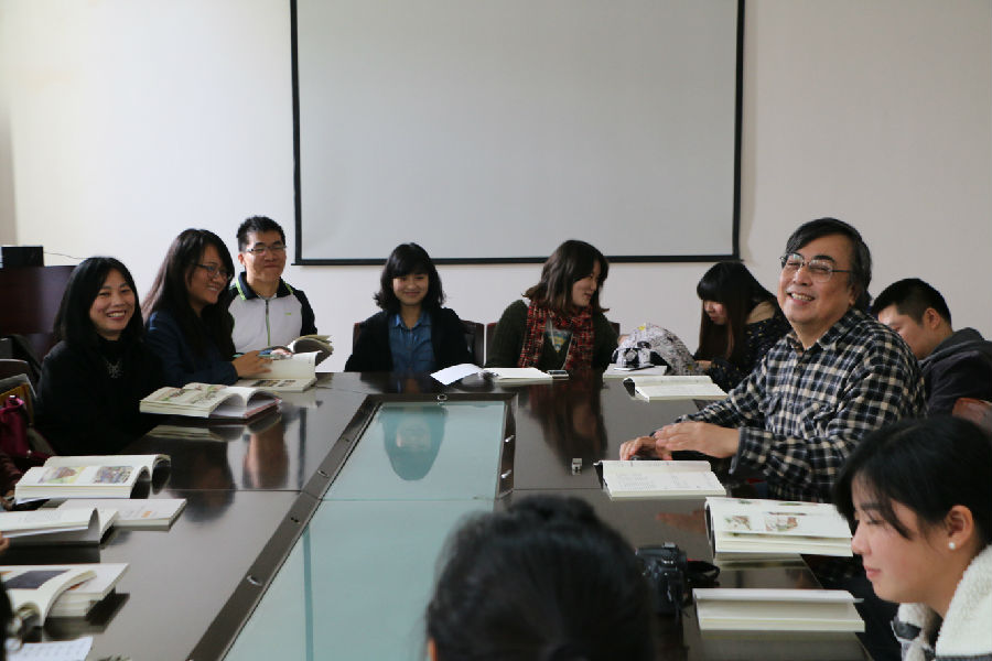 2014级本科生老挝写生作品展览在艺术与传媒大楼一楼美术馆举行的开幕仪式。国际合作处马昌前处长,肉漫