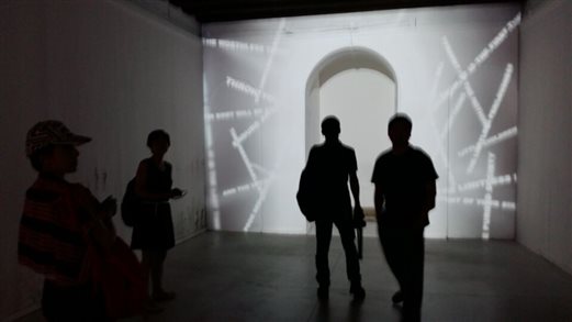当地时间6月13日,当代艺术系教师参观第五十六届威尼斯双年展军火库展区。军火库展区分邀请展和国家馆。邀请展展出从世界各国遴选的优秀作品,中国当代艺术家丘志杰获邀参展。中国馆在众多国家馆中也有不俗表现,展出了谭盾,文慧,吴文光,陆扬五位艺术家的装置,音乐,舞蹈等不同门类的艺术作品,展览以“民间未来”呼应展览总主题“全世界的未来”。中国馆外,由徐冰制作的巨大的凤凰悬挂于水面上方,吸引了众多参观者。