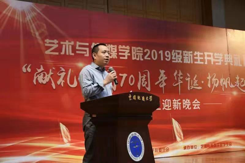音乐学,设计学,新闻传播学近几年取得的成就。桂院长谈到,每年开学典礼上的讲话都是他十分重要的时刻,他和全体老师一样,希望艺媒学子在未来都能成为伟大的音乐家、设计师、新闻传播者和科普传播专家。讲话几度被场下热烈的掌声打断。最后,桂院长引用了中国美术学院校长许江的一句话:“我们对学生既不是管,也不是不管,而是两个字——守望”,期待大家能够不断成长,把自己的青春融合在每个学习的日常。