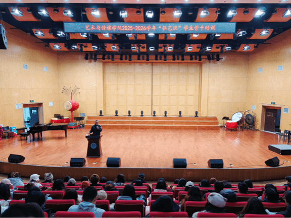 2025年12月4日下午,“弘艺班”学生骨干培训第二期在北区音乐厅举行。本次主题为安全教育之防范电信诈骗,由喻家山派出所王东警官主讲。学工组全体专兼职辅导员,研究生会、学生会、分团委全体学生骨干,以及各班班委,学生宿舍网格化管理员参加本次培训。